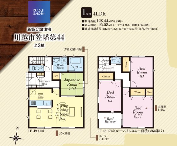川越市笠幡第44 新築一戸建て 1号棟